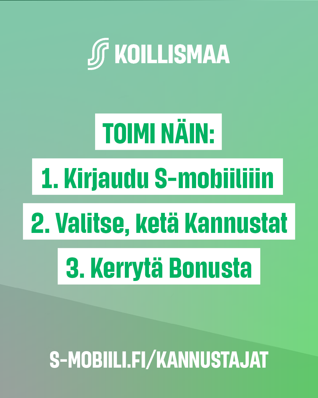 Netissä: kirjaudu S-käyttäjätilille osoitteessa s-kayttajatili.fi siirry kohtaan Asiakasomistajuus ja valitse Kannustajat